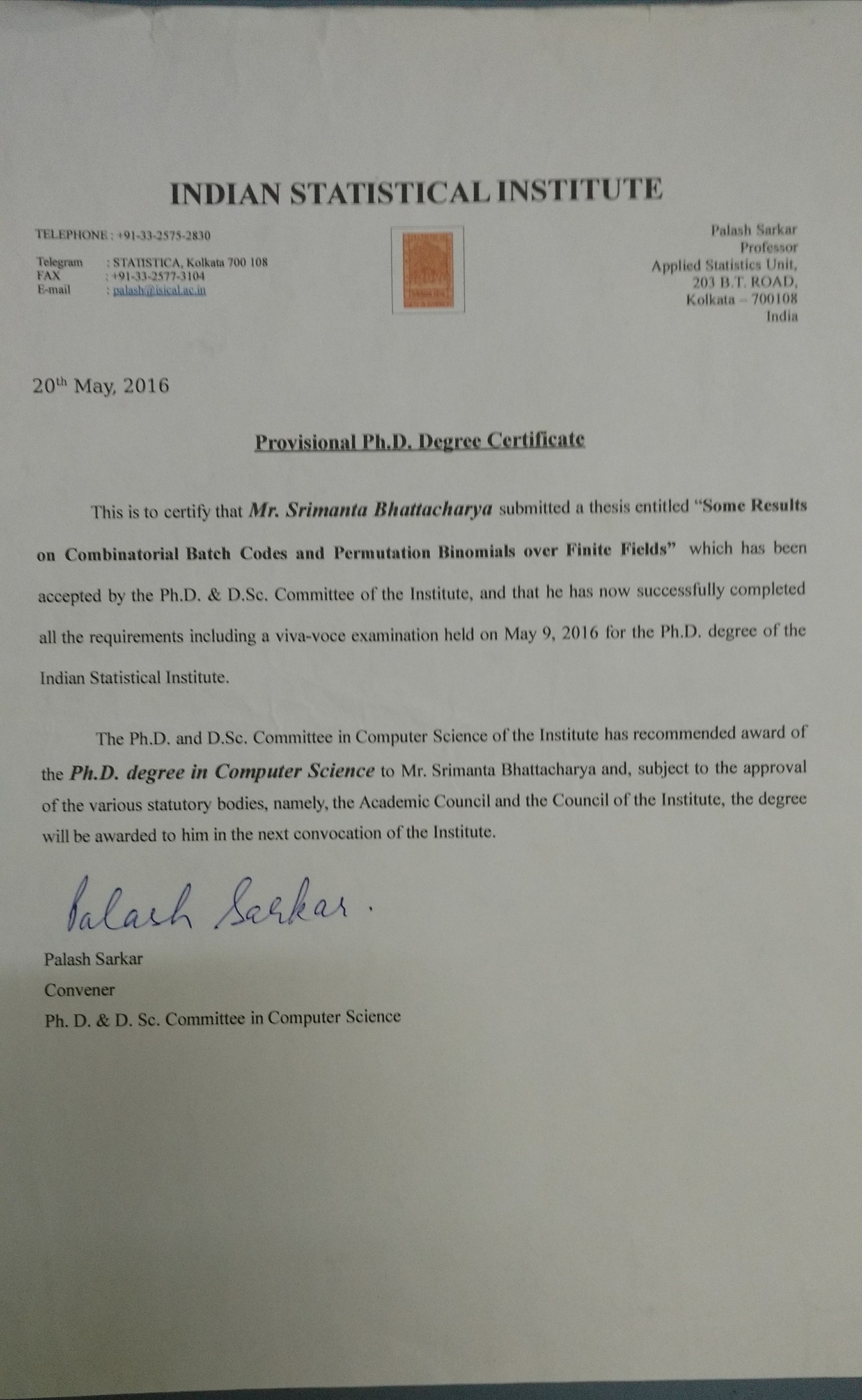 Indian Statistical Institute,Kolkata